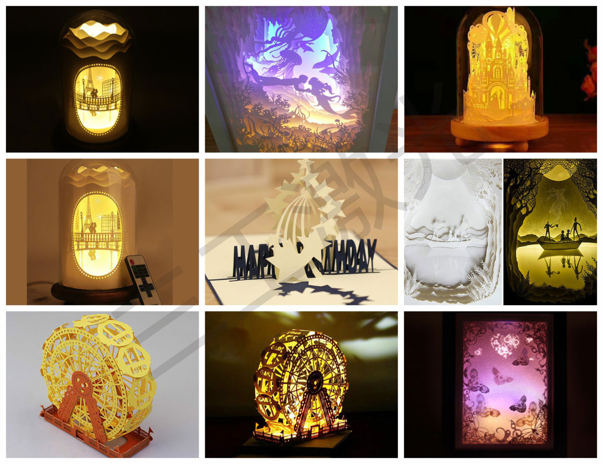 該設備適用于賀卡等各種紙質材料的雕刻、切割、鏤空制作。