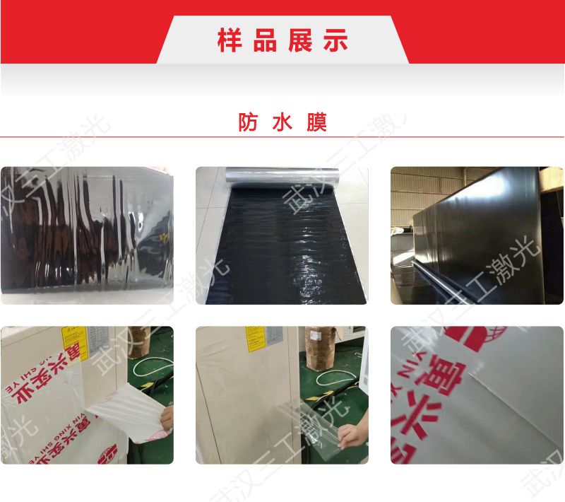 該設備針對各種PE防水膜,利用激光的熱效應,無接觸的對薄膜進行燒灼。薄膜上劃線全透、半透均可控制,能量隨速度變化保證變速時加工效果的一致性。