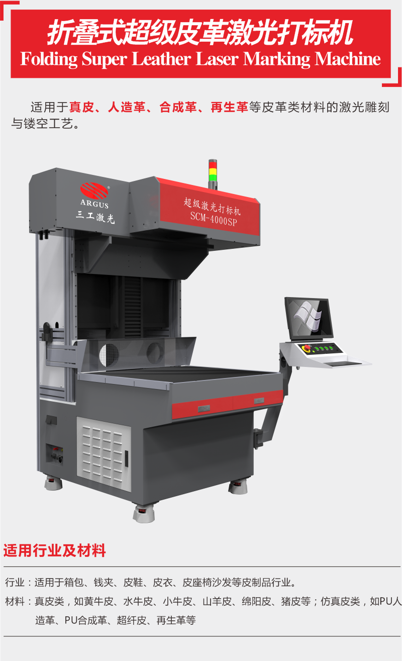 超級皮革激光打標機采用更高效穩定的振鏡控制系統,振鏡運動精度更高,加工微小字符圖形更清晰,整機工作更穩定可靠。